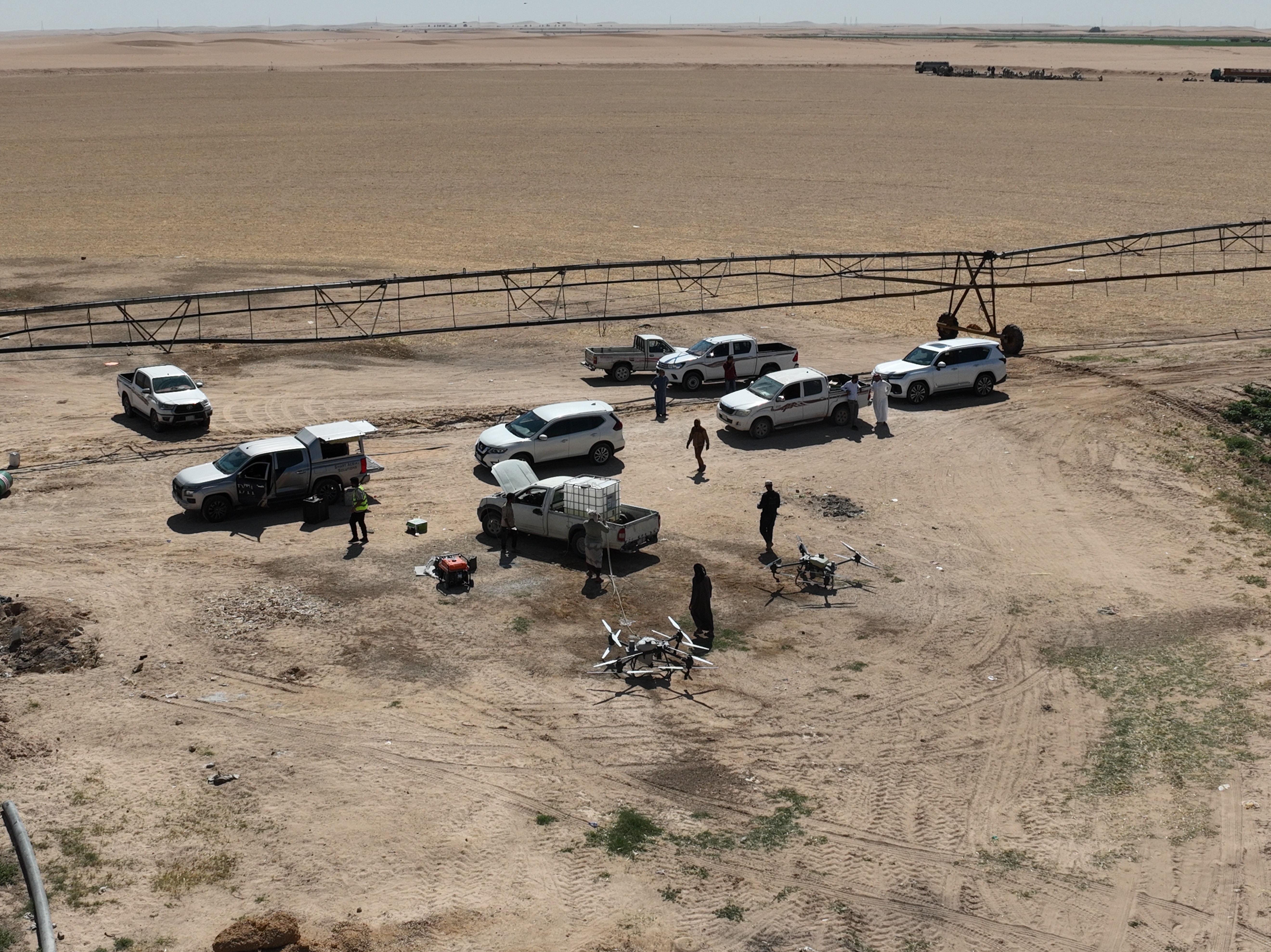 الرش الجوي الدقيق لمكافحة الفطريات والحشائش لمحاصيل البصل والشمام.